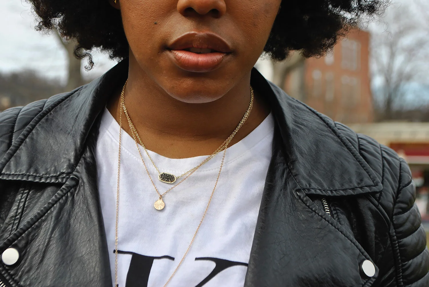 (From top to bottom) Kendra Scott, Elisa Necklace in Platinum Drusy | Necklace duo: Aldo Accessories